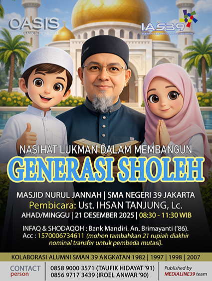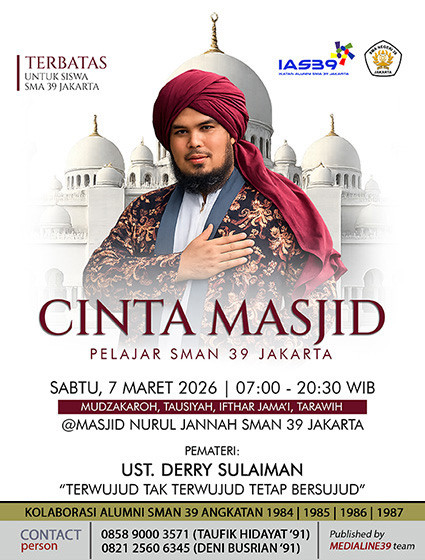 Selamat datang kembali di SMA Negeri 39 pada dimensi waktu yang berbeda. Almamater ini tentunya memiliki makna tersendiri bagi setiap kita. Dia menyimpan sejuta kisah dalam diam yang tak layak untuk diabaikan begitu saja.